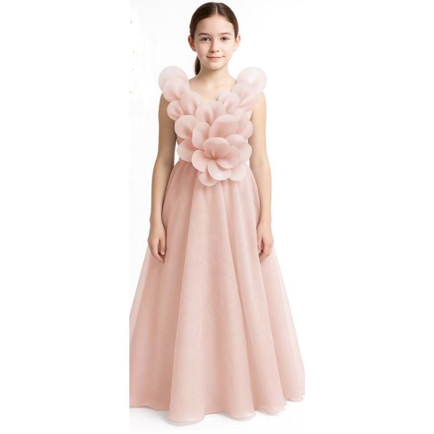 PORÇA pudra rengi abiye uzun elbise - PORÇA - PUDRA - 10 YAŞ - 3181-PUDRA-10 YAŞ